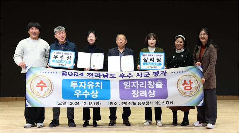진도군이 최근 전라남도에서 주관하는 ‘2024 전남 일자리 한마당’ 행사에서 투자유치 평가 우수상, 일자리 창출 평가 장려상을 받아 2개 분야에서 우수 시·군으로 선정됐다고 18일 밝혔다. (자료=진도군)