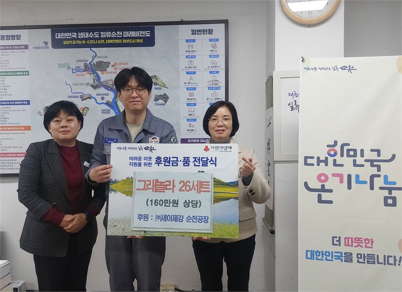[한국정경신문(순천)=최창윤 기자] 순천시(시장 노관규)는 최근 ㈜세아제강 순천공장(공장장 류청)이 지역아동사랑 실천을 위해 시리얼 세트 26개(160만원 상당)를 기부했다고 밝혔다.