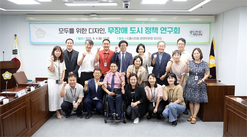 [한국정경신문(시흥)=홍준표 기자] 경기 시흥시의회 의원 연구단체 '모두를 위한 디자인, 무장애 도시 정책 연구회'가 최근 의회운영위원회 회의장에서 연구회 2차 활동으로 ‘장애물 없는 생활환경 조성을 위한 모두의 약속’을 주제로 한 전문가 초청 강연을 진행했다.