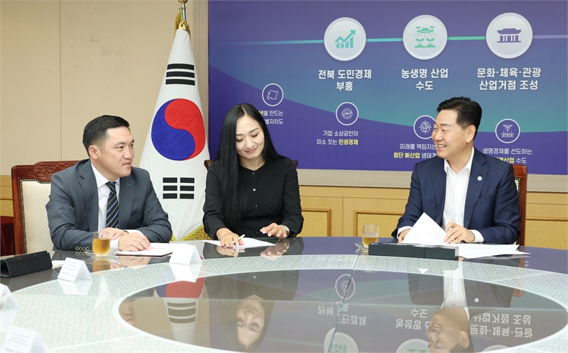 [한국정경신문(전주)=최창윤 기자] 전북특별자치도는 20일 몽골 우문고비주 주지사 일행과 간담회를 갖고 양 지역 간 교류와 협력 확대 방안을 논의했다.