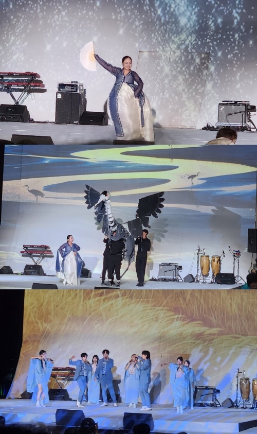 순천시와 순천시 세계유산보존협의회는 12일 오후 그린아일랜드에서 2025 세계유산축전 선암사, 순천갯벌 개막식을 개최했다고 밝혔다. 주제공연 (사진=최창윤 기자)