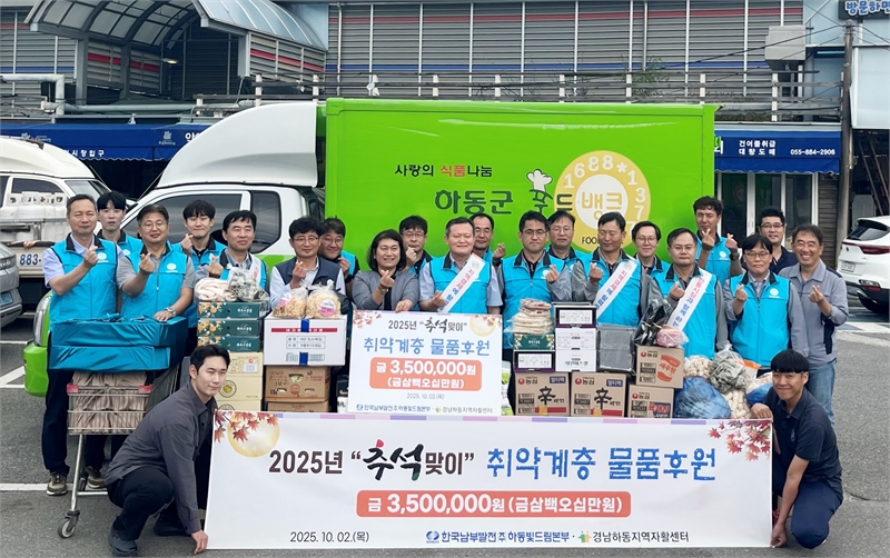 [한국정경신문(하동)=박순희 기자] 한국남부발전㈜ 하동빛드림본부(본부장 윤상옥)가 추석 명절을 앞두고 하동지역자활센터(센터장 손호연)를 찾아 350만 원 상당의 추석 성수품을 전달했다.