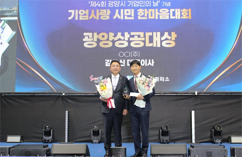 광양상공회의소가 선정하는 ‘광양상공대상’은 기업의 경쟁력 향상과 지역사회와의 상생발전에 크게 기여한 ‘OCI㈜ 김유신 대표이사’가 수상했으며 기업하기 좋은도시 만들기에 헌신한 ‘광양만환경포럼 허형채 대표’가 ‘기업사랑 시민대상’을 수상했다.