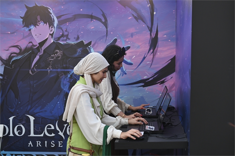 UAE K-엑스포 참관객이 ‘나 혼자만 레벨업: 어라이즈 오버드라이브’를 시연하고 있다. (사진=넷마블)