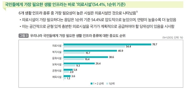 주택·부동산정책에 바란다 중 우리나라 국민들에게 가장 필요한 생활 인프라 종류에 대한 중요도 순위 (이미지=국토연구원)