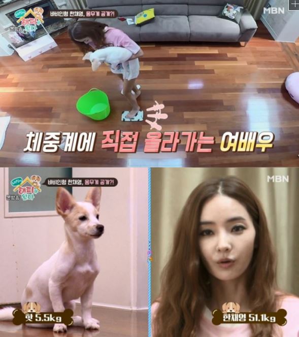 한채영은 강아지 핫의 몸무게를 재기 위해 그를 안고 채중계에 올라갔다. 한채영은 몸무게 51.1kg 으로 원조 바비인형 다운 몸매관리를 드러내 감탄을 자아냈다.
