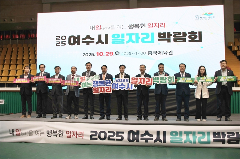[한국정경신문(여수)=최창윤 기자] 여수상공회의소(회장 한문선)는 여수시와 공동으로 주최한 2025 여수시 일자리박람회가 지난달 29일 여수 흥국체육관에서 성황리에 열렸다고 밝혔다.이번 박람회는 ‘내일(Job)을 여는 행복한 일자리’를 주제로 구직자와 기업이 직접 만나 소통하며 현장에서 채용까지 이어질 수 있는 실질적 고