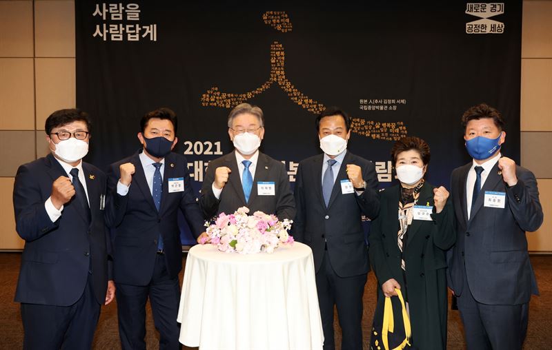 (왼쪽부터)박관열의원, 박근철의원, 이재명 경기도지사, 장현국 경기도의회 의장, 심규순의원, 최승원의원 [자료=경기도의회]