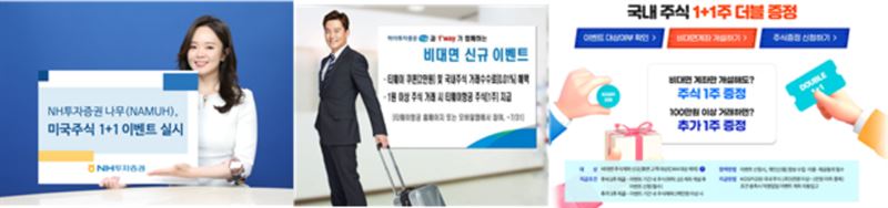 (왼쪽부터) NH투자증권, 하이투자증권, KTB투자증권에서 진행하고 있는 주식 증정 이벤트 [자료=각 사]