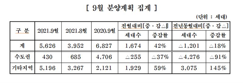 이는 전달의 3952세대에 비해 1674세대가 증가했으며 전년도 같은 기간의 6827세대 대비 1201세대가 감소한 수치다.