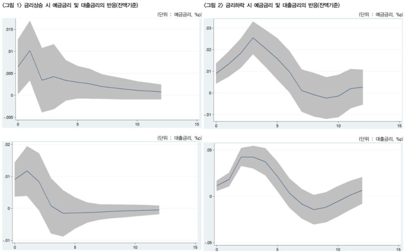 다만 이 경우에도 일반적 인식과 달리 금리상승기 때 대출금리보다 예금금리가 더 많이 오르는 결과를 보였다.