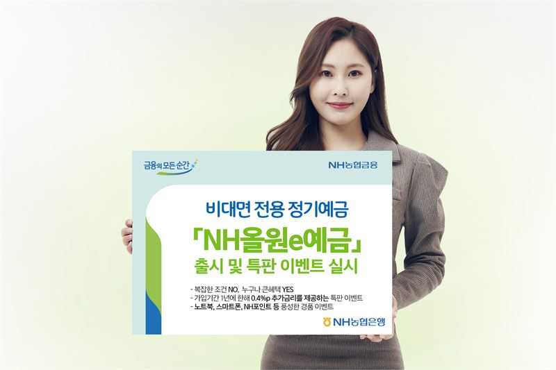 NH농협은행이 비대면 전용 정기예금 ‘NH올원e예금’ 출시를 기념해 0.4%P 추가 제공 특판 이벤트를 진행한다. [자료=NH농협은행]