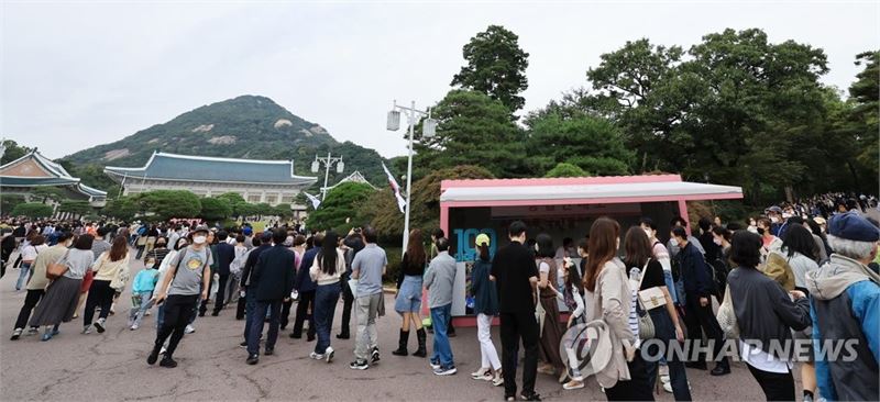 한편 개방 이후 최근까지 주말에는 평균 2만여명, 평일에는 1만여명이 청와대를 방문하는 것으로 알려졌다.