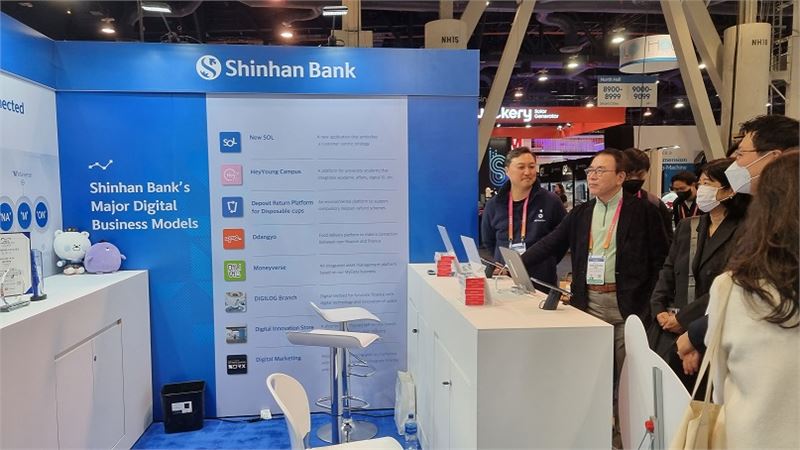 지난해 신한은행은 협력업체와 AI 뱅커로 공동참가 했으며 올해는 핀테크 카테고리에 단독 부스를 마련해 자체 구축한 메타버스 플랫폼 ‘시나몬’을 관람객들에게 소개했다.