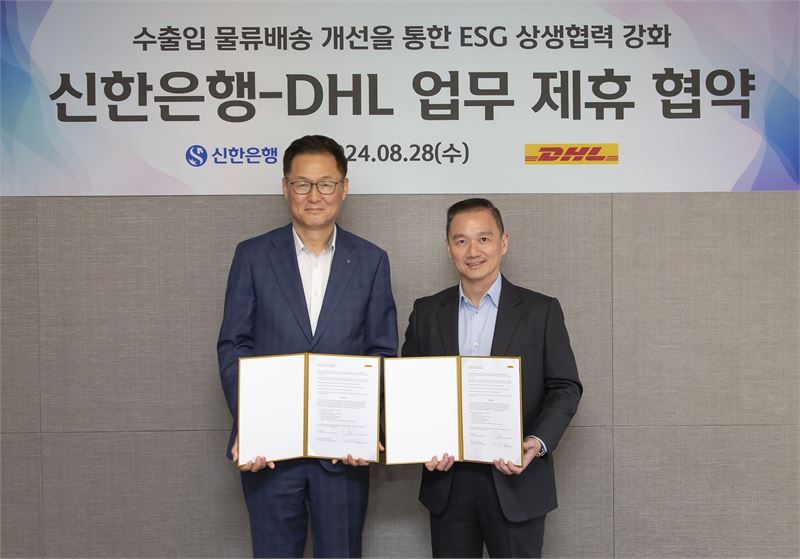 [한국정경신문=윤성균 기자] 신한은행(은행장 정상혁)은 지난 28일 서울시 마포구 DHL코리아 본사에서 DHL코리아(대표 한지헌)와 ESG 상생협력 강화를 위한 업무협약을 체결했다고 29일 밝혔다.