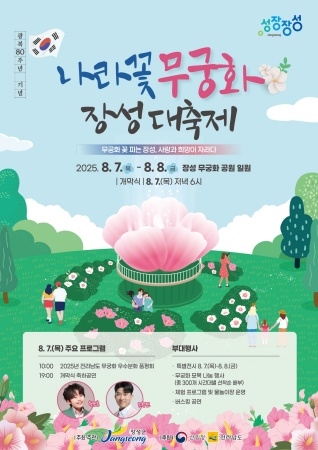 먼저 오는 7일부터 8일까지 이틀 동안 광복 80주년 기념 ‘나라꽃 무궁화 장성대축제’가 장성무궁화공원(장성읍 영천리 985)에서 열린다. 전국 4개 지역에서 순차적으로 열리는 산림청 전국단위 행사로 전남을 대표해 장성군에서 개최된다.