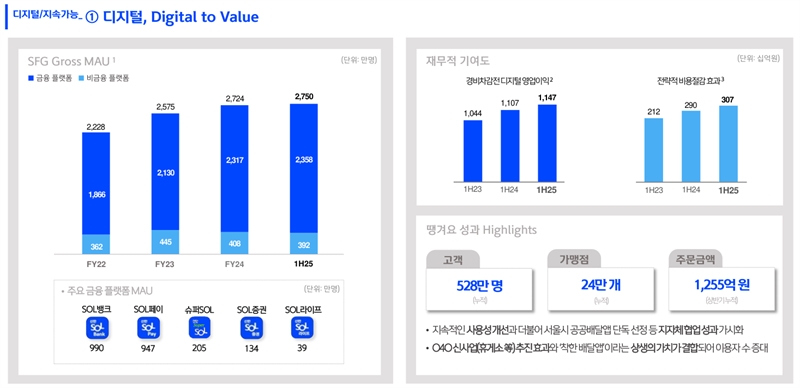신한금융그룹의 올해 상반기 실적 발표 자료에 따르면 그룹 전체 앱의 MAU가 2750만명을 기록했다. (이미지=신한금융그룹)