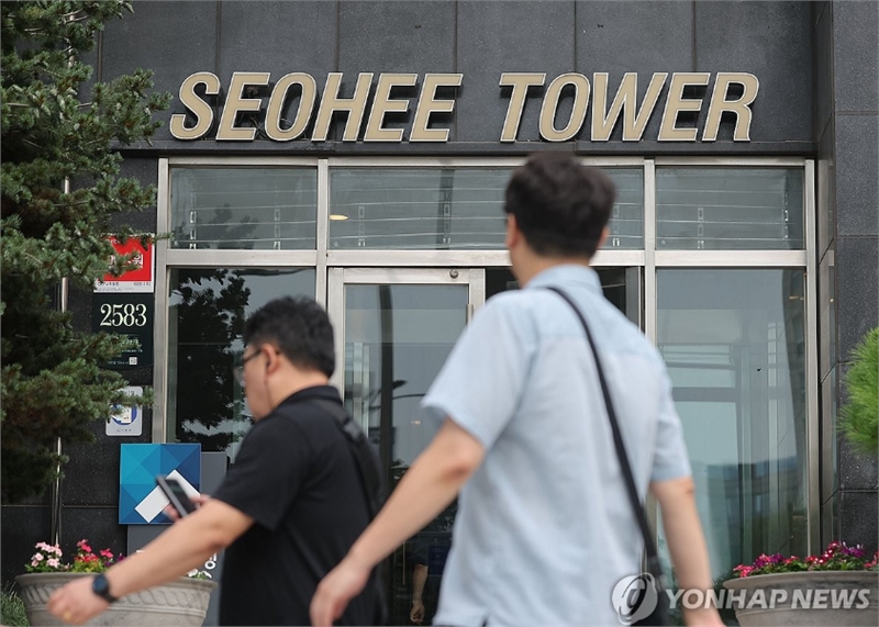 지난 11일 김건희 여사의 의혹들을 수사하는 민중기 특별검사팀이 '나토 목걸이 의혹'과 관련해 압수수색 중인 서울 서초구 양재동 서희건설 사옥 모습 (사진=연합뉴스)
