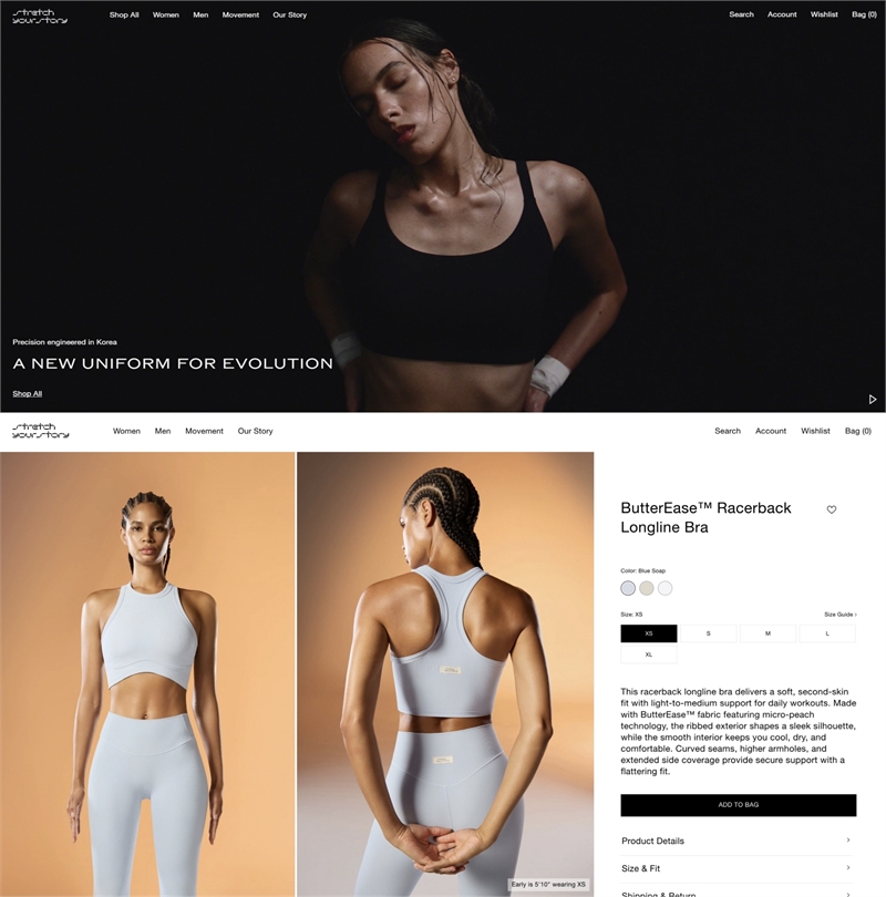 안다르는 스트레치유어스토리 론칭에 앞서 지난 7월 미국 현지에 커머스 인프라 구축을 완료하고 온라인 스토어를 시범 운영해 소비자 반응 데이터를 확보했다.