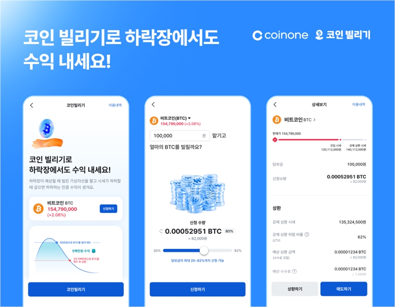 코인원 이성현 대표는 “코인 빌리기는 자산을 유지하면서도 투자 자금을 확보할 수 있고 하락장에도 수익을 노릴 수 있는 서비스”라며 “코인 빌리기 서비스를 이용해 새로운 투자 기회를 모색하고, 전략적인 투자를 경험해 보시길 바란다”고 밝혔다.
