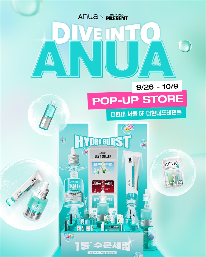 이번 팝업에서는 아누아의 PDRN 라인을 비롯해 어성초 라인 등 다양한 베스트셀러 제품을 직접 체험하고 구매할 수 있다. 대표 제품인 PDRN 세럼은 독자적인 스마트 캡슐 공법을 적용해 피부에 즉각적인 수분감을 선사하며 국내외에서 높은 인기를 얻고 있다.