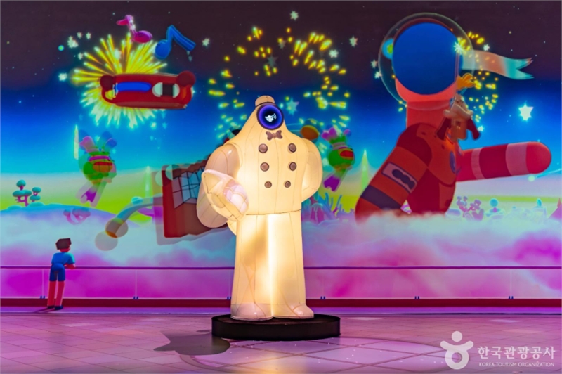 올 8월 새롭게 문을 연 코스믹 리조트는 1400평에 달하는 대규모 공간에 13가지 콘셉트의 미디어 아트와 체험이 가능하다. 핵심 콥셉트는 우주적 판타지다. 우주로 진입하는 듯 어두운 통로를 지나 빠르게 움직이는 별 사이를 유영하듯 건너면 리조트에 도착한다. 리조트의 지배인인 '스페이스 맨'과 화려한 퍼레이드의 환영을 받으면 본격적인 우주여행이 시작된다고.