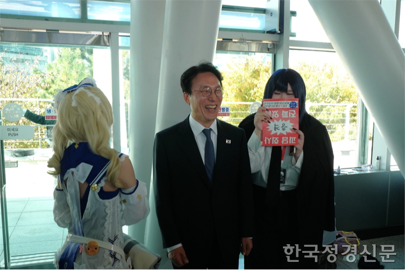 제2전시장으로 이동하던 중에는 코스프레를 하고 있던 이들을 직접 찾아 대화하기도 했다. 그의 깜짝 방문에 현장에 있던 시민들이 놀라워했다.