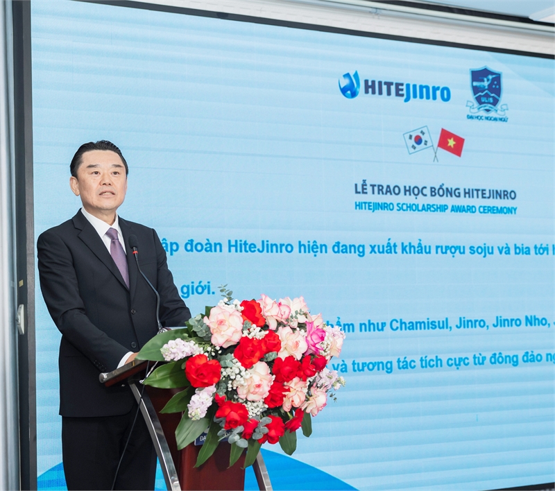 하이트진로는 지난 13일 하노이 국립외국어대학교에서 하이트진로 김인규 대표이사와 하노이 국립외국어대학교 관계자들이 참석한 가운데 장학금 수여식을 개최했다고 17일 밝혔다. 학업에 매진하는 베트남 학생들의 꿈과 도전을 응원하고자 이날 하노이 국립외국어대학교 학생 20명을 선발해 1인당 2000만동씩 총 4억동(한화 약 2500만 원)의 장학금을 전달했다.