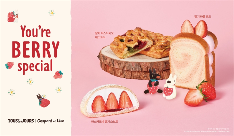 CJ푸드빌은 뚜레쥬르가 세계적인 인기 캐릭터 가스파드와 리사와 컬래버레이션을 통한 딸기 신제품 3종을 선보이고 출시 기념 프로모션을 진행한다고 9일 밝혔다.