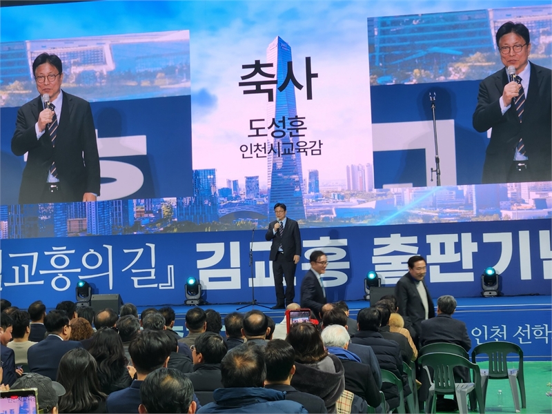 [한국정경신문(인천)=박용일 기자] 도성훈 인천광역시교육감이 지난 10일 문학체육관에서 열린 김교흥 국회의원의 저서 출판기념회에 참석해 축사를 전하며, 미래 세대에게 필요한 역량으로 '인간성을 갖춘 돌파력'을 제시했다.